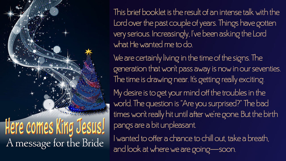 This short book is directed toward the born again Bride of the Messiah. It is an examination of what to expect prophetically, over the next few years. The author has spent a great deal of time examining these issues over the past decades and the end obviously has drawn close. A lot of scriptural evidence is presented, plus a bit of clearly labeled speculation. The upcoming events are a spiritual event that ranks with the Flood, the Exodus, and the Crucifixion & Resurrection. This time the Messiah is coming back to defeat and eliminate the satanic world order, and sit as King of Kings on his throne in Jerusalem. It has all been extensively prophesied. Like when Jesus of Nazareth came, and fulfilled all the prophecies which spoke of Him exactly, we expect that He will do the same this time. In other words, what the Lord has promised, He will accomplish.